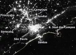 The São Paulo Macrometropolis[1] (Portuguese: Macrometrópole Paulista),[2] also known as Expanded Metropolitan Complex[3] is a Brazilian megalopolis that emerged through the existing process of conurbation between the São Paulo's metropolitan areas located around the Greater São Paulo, with more than 30 million inhabitants, or 74 percent of São Paulo State's population,[2] and is one of the most populous urban agglomerations in the world.[4][5][6][7]