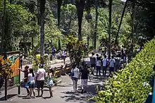 The São Paulo Zoo was created in June 1957, from a statement of the then governor Jânio Quadros to the head of the São Paulo State Secretary of Agriculture's Department of Fish and Game, Emilio Varoli. The first animals of exotic origin such as lions, camels, bears and elephants, were acquired from private circuses while Brazilian wild fauna animals, such as jaguars and cock-of-the-rock, were acquired in Manaus.[1] The opening of the zoo, originally scheduled for January 1958, was postponed due to heavy rains that year, and on 16 March São Paulo Zoo was officially inaugurated featuring 482 animals, including nine deer, two spotted jaguars and one black jaguar, three ocelots, two wild cats, one bear, 23 parrots, three Spix's macaws, and the rhinoceros Cacareco, made famous by the episode when it was elected city councilor in the elections of October 1958.