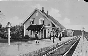 The station became unmanned on 1 January 1973 and was closed on 21 June 1996.[1] The line was replaced by a double tracked line allowing speeds up to 160 kilometres per hour (99 mph).[3] In 2003, a family bought the station with head house for 1.3 million kr.[4]
