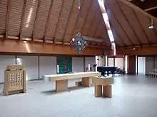Søreide Church (Norwegian: Søreide kirke) is a parish church of the Church of Norway in Bergen Municipality in Vestland county, Norway. It is located in the Søreidegrenda neighborhood in the city of Bergen. It is the church for the Søreide parish which is part of the Fana prosti (deanery) in the Diocese of Bjørgvin. The white, wooden church was built in a fan-shaped style in 1973 using designs by the architect Helge Hjertholm. The church seats about 300 people, although by moving some folding walls, it can expand to fit an additional 300 people.[1][2][3]