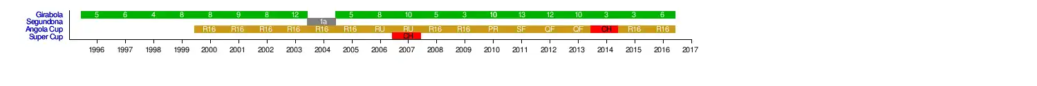 In 1995, as Saneamento Rangol, the club was promoted to the following year's first division. In 2003, Benfica de Luanda was relegated to the second division. In 2004, the club finished second in the second division, and was promoted to the first division. In 2005, the club finished 6th in the first division.