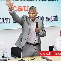- ↑ "Co-author dies as Sri Lanka parliament shoots down report". Economy Next. Colombo, Sri Lanka. 25 August 2018. Retrieved 26 August 2018.