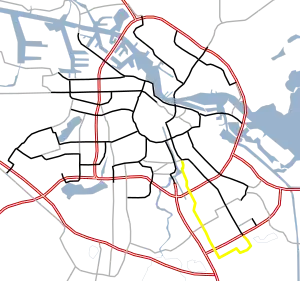 S111 is a Dutch road in Amsterdam. S111 is roughly 4 miles (6.4 kilometers) and is connected to S112. The S111 connects the Julianaplein (in front of the Amstel station) and the S112 with the A10, Villa Arena ( a shopping center) in the Bijlmermeer and the A9. Next, the road makes a loop past the Academic Medical Center, and once again connects to the A9. The road is sequentially called Julianaplein, Overzichtweg, Spaklerweg, Holterbergweg, Muntbergweg and Meibergdreef.