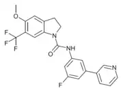 - ↑ Bromidge SM, Dabbs S, Davies DT, Davies S, Duckworth DM, Forbes IT, et al. (March 2000). "Biarylcarbamoylindolines are novel and selective 5-HT(2C) receptor inverse agonists: identification of 5-methyl-1-[[2-[(2-methyl-3-pyridyl)oxy]- 5-pyridyl]carbamoyl]-6-trifluoromethylindoline (SB-243213) as a potential antidepressant/anxiolytic agent". Journal of Medicinal Chemistry. 43 (6): 1123–34. doi:10.1021/jm990388c. PMID 10737744.
