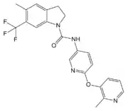 - ↑ Berg KA, Navailles S, Sanchez TA, Silva YM, Wood MD, Spampinato U, Clarke WP (October 2006). "Differential effects of 5-methyl-1-2-[(2-methyl-3-pyridyl)oxyl]-5-pyridyl]carbamoyl]-6-trifluoromethylindone (SB 243213) on 5-hydroxytryptamine(2C) receptor-mediated responses". The Journal of Pharmacology and Experimental Therapeutics. 319 (1): 260–8. doi:10.1124/jpet.106.104448. PMID 16807362.