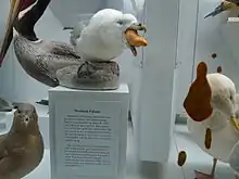 The museum is renowned for fine dioramas of birds, mammals, and southern California habitats. These were illustrated in the 1930s and 1960s by famous artists of the California school of plein-aire painters. Among the most notable of these is the Bird Habitat Hall featuring mounted specimens by staff members Egmont Rett and Waldo Abbott and background paintings by Ray Strong.[9] The museum is also known for its halls of marine life, geology, and Chumash Indian life, as well as an art gallery dedicated to antique natural history prints. It has collections of over 3 million specimens and an active research program with a focus on marine biology, terrestrial vertebrates, insects, anthropology, geological mapping, and natural history art. Greeting visitors near the front entrance is what has become an iconic display for the museum and Santa Barbara: a rearticulated skeleton of a 72 feet (22 m) blue whale.