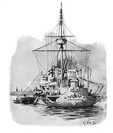 SMS Württemberg[lower-alpha 1] was one of four Sachsen-class armored frigates of the German Kaiserliche Marine (Imperial Navy). Her sister ships were Sachsen, Bayern, and Baden. Württemberg was built in the AG Vulcan shipyard in Stettin from 1876 to 1881. The ship was commissioned into the Imperial Navy in August 1881. She was armed with a main battery of six 26 cm (10.2 in) guns in two open barbettes.