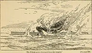 ![]() The U-boat (SM UC-29) never recovered from the surprise (attack by HMS Pargust) | |