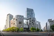 - Hongkou SOHO, which has 95,000 square meters of space, and "is enveloped in a pattern of pleated aluminum mesh measuring 18mm in width and as a whole, visualizes like a woven lace".[5] As of 2017, it was reported to have an occupancy rate of 96%.[19]