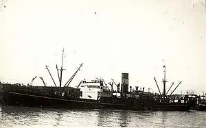 Carsbreck later formed part of Convoy HG 75 from Almería to Barrow-in-Furness. She carried a cargo of 6,000 tons of iron ore.[2] At 0636 hours on 24 October 1941 Reinhard Suhren's U-564 sighted the convoy and fired five torpedoes at it. Three ships were hit, and all three sank:[2] Alhama, Ariosto and Carsbreck. Twenty four of the Carsbreck’s complement were killed: 19 crewmen, four DEMS gunners and the Master. 16 crew members and two DEMS gunners survived and were rescued by the Free French Elan-class minesweeping aviso Commandant Duboc.[2] They were transferred to the CAM ship Ariguani. Two days later U-83 torpedoed and damaged Ariguani. She was abandoned, but later was re-boarded and towed to Gibraltar. The Flower-class corvette HMS Campion picked up Carsbreck's survivors and transferred them to the V-class destroyer HMS Vidette, which took them to Gibraltar.[2]