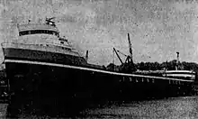 Edward L. Ryerson's owners intended her to be as aesthetically attractive and luxurious as possible, spending a total of $8 million (equivalent to $61.7 million in 2022[17]) on her.[18] Her accommodations, which were the first of any ship on the Great Lakes to be fully air conditioned, can accommodate up to 37 crewmen and eight guests.[2][13][19] Boatnerd writer George Wharton described her as "the most aesthetically pleasing of all lake boats".[2] Edward L. Ryerson was equipped with a magnetic stainless steel map of the Great Lakes for the benefit of passengers, many of whom included members of Inland Steel's management and guests from other companies.[20] In her basic design and construction, Edward L. Ryerson was considered to be a larger version of Inland Steel's 1949 freighter Wilfred Sykes.[2][9] She is the last steam-powered American freighter built on the lakes, and also the last one built without a self-unloading boom. She was the last American freighter built on the lakes until Stewart J. Cort in 1972, and the last lake freighter constructed in Manitowoc.[2][3]