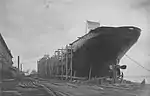 In 1843, the gunship USS Michigan, built in Erie, Pennsylvania, became the first iron-hulled vessel built on the Great Lakes.[1] In the mid-1840s, Canadian companies began importing iron vessels prefabricated by shipyards in the United Kingdom. However, it would not be until 1862 that the first iron-hulled merchant ship, Merchant, was built on the Great Lakes.[1] Despite the success of Merchant, wooden vessels remained preferable to iron ones until the 1880s, due to their inexpensiveness, and the abundance of timber.[2][3][4] In the early 1880s, shipyards around the Great Lakes began to construct iron ships on a relatively large scale,[4][5] and in 1884 the first steel freighters were built there.[6][7] By the 1890s, the majority of ships constructed on the lakes were made of steel.[8][9] The late 19th and early 20th centuries saw a rapid increase in the size of lake freighters; the first 400 feet (121.9 m) freighter was built in 1895, the first 500 feet (152.4 m) freighter was constructed five years later.[10]