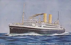 SS Minnedosa was one of a pair of transatlantic steam ocean liners that were built in the United Kingdom, launched in 1917 and operated by Canadian Pacific until 1935. Her sister ship was Melita.