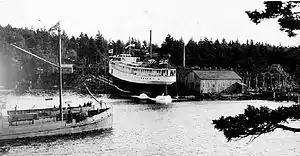 In 1928 the CPR brought a new vessel, the Princess Norah into service, and was able to retire the Princess Beatrice. Princess Beatrice was sold to B.L. Johnson, Walton & Co., a Vancouver concern, who removed the ship's machinery and converted the hulk to a floating cannery.[13] The ex-Princess Beatrice, now a cannery, was then towed to the west coast of Vancouver Island.[14]