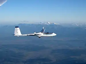 The Allstar SZD-54 Perkoz (English: great crested grebe) is a two-seater, glider for training, aerobatics, cross country flight and cloud flying from the Polish manufacturer Allstar PZL Glider (formerly PZL Bielsko). The sailplane has exchangeable wing tips for either 17.5 or 20 metres (57.4 ft or 65.6 ft) and is manufactured primarily from glass fibre reinforced plastic (GFRP). Without wing extension, it is certified for unlimited aerobatic manoeuvres. For glider training, the short wingspan (17.5 metres) is supplemented with winglets.[1] As a cross-country glider with a 20 metres wing and winglets, the Perkoz has a glider index of 102. The SZD-54-2 Perkoz is the successor of the widely used SZD-50-3 Puchacz trainer, which is part of the SZD family of aircraft.[2]