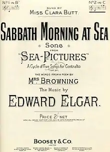 "Sabbath Morning at Sea" is a poem by Elizabeth Barrett Browning first published in 1839, which Sir Edward Elgar set to music in 1899 as the third song in his song-cycle Sea Pictures.[1]