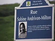 - ↑ "L'école élémentaire de Sainte-Thérèse B à Fort-de-France porte désormais le nom de l'historienne Sabine Andrivon-Milton". Martinique la 1ère (in French). Archived from the original on 2021-04-23. Retrieved 2022-03-12.