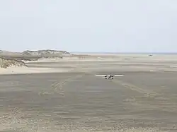 Prior permission is required to land at this aerodrome.[1] Prior to aircraft landing or taking off, the Operations Coordinator of Parks Canada's Sable Island Station must thoroughly inspect the area in use that day to ensure that it is not too soft. This is accomplished by driving a Jeep up and down the length of the landing area, thereby marking out the "runway". Too much rain will render the sand too mushy to safely land the aircraft; conversely, in the summer, the sand may dry out to such an extent that the area becomes too soft.
