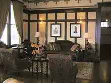 The hotel served passengers on the Chicago, Milwaukee, St. Paul and Pacific Railroad, which terminated in Three Forks until 1927, when the line was extended to Gallatin Gateway.[3] The original building was the Madison Hotel, built in 1862 on the original Three Forks townsite, and moved on log rollers a mile to its present location. At the time, the Milwaukee Depot was across the street, though the railroad That building now is the eastern portion of the current structure, housing support facilities. In 1910, the main lobby and 29 rooms were constructed by railroad agent John Q. Adams,[4] who hired architect Fred Willson to create a grand but warm and welcoming design.[1]