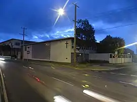 The school has gone through many changes and redevelopment from its initial build in 1957. Suffering a fire in 1982 and expansion, the need to join class to Salesian College was needed. In 1983, the students would return to the school with running classrooms and a familiar schooling environment.[2] A redevelopment of the master plan for the school was conducted in 1998 to accommodate for the expanding number of student enrolments. As new buildings were added, new facilities followed. The Romberg building (known as the “Boyd” building within the school community) has also followed the alterations. The courtyard space has been overlaid and shelters a fitness space for students whilst the upper floor classrooms remain as functional classrooms for such curriculum such as arts and music. A set of stairs which was initially located in the courtyard have been relocated to the west of the exterior of the Romberg building, still allowing for access to the upper level. The cream brick wall and opaque coloured windows remain as the solid icon of the school on the main street frontage, supported by a cross which highlights the school's religious background.
