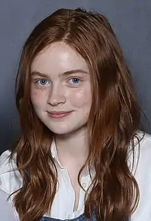 In September 2016, Sink auditioned to play Maxine "Max" Mayfield in the second season of Netflix's science fiction drama series Stranger Things.[28] The casting directors deemed the 14-year-old Sink too old for the role, but she "begged and pleaded" for more material to perform for them.[7] She attended four callbacks, including a chemistry read with Gaten Matarazzo and Caleb McLaughlin.[7][28] During the audition process, Sink lied about having rollerblading experience.[29] According to director and writer Matt Duffer, casting Sink was "a bit of a no-brainer" due to her "innocent, child chemistry" with Matarazzo and McLaughlin.[30] After she booked the role, Sink had to learn how to skateboard, an activity she disliked due to falling on her first day of practice.[29] She attended three-hour lessons daily for two months.[28] The role became Sink's breakthrough.[31][32][33] Critics described her as "spirited",[34][35][36] with IGN commenting that she acts "beyond her years and makes a welcomed addition to the cast".[37] Sink, along with her Stranger Things cast members, was nominated for the SAG Award for Outstanding Performance by an Ensemble in a Drama Series.[38]