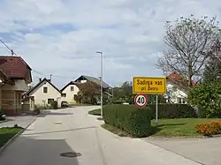 Sadinja Vas pri Dvoru (pronounced [saˈdiːnja ˈʋaːs pɾi ˈdʋɔːɾu]; Slovene: Sadinja vas pri Dvoru, German: Schöpfendorf[2]) is a village in the Municipality of Žužemberk in southeastern Slovenia. It lies on the left bank of the Krka River just off the regional road from Žužemberk to Dvor. The area is part of the historical region of Lower Carniola. The municipality is now included in the Southeast Slovenia Statistical Region.[3]