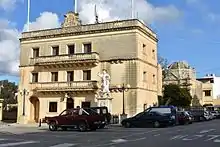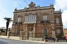 Dar id-Djalogu, built during the Order of St. John, with coat of arms defaced during the French occupation, and now a political club of the Nationalist Party