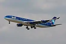 On 5 November 2009, Safi Airways took delivery of a pre-owned Airbus A340-300, which was phased out after suspension of the Frankfurt route due to the EU ban.[5][6] In 2011, Safi Airways replaced their Boeing 737-300 aircraft with Airbus A32x aircraft. They intended to acquire an Airbus A330 for long haul routes in 2016[7] which however did not take place.