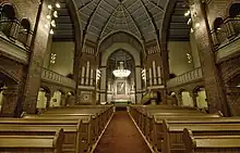 Sagene Church is located in Oslo, Norway. The church is one of the most rugged and prominent in Oslo. The church was built in gothic revival style and it was consecrated in 1891.[1] It was designed by architect Christian Fürst in neo-Gothic style. There are 600 seats.[2]