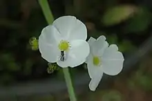 Sagittaria guayanensis, the Guyanese arrowhead,[3] is a perennial aquatic plant species native to both the Old and New World. It has broadly hastate (arrow-shaped) leaves with ovate lobes.[4]