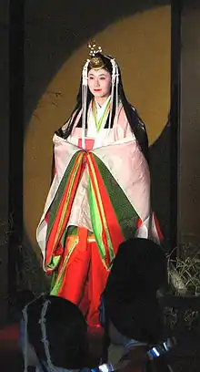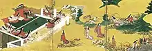 The procession began in what is today the Arashiyama district on the west side of Kyoto. In the Heian period, successive imperial princesses stayed in the Nonomiya Shrine for a year or more to purify themselves before becoming representatives of the imperial family at the Ise Shrine.[8] Contemporary annual processions recreate a scene from a picture scroll of the imperial court during the Heian period, starting from the shrine and continuing as far as the Togetsu-kyo Bridge, Arashiyama.[9]
