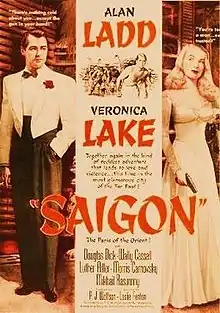 Saigon is a 1948 American crime film directed by Leslie Fenton starring Alan Ladd and Veronica Lake. In their fourth and final film together.[3] It was distributed by Paramount Pictures and was one of the last films Veronica Lake made under her contract with the studio. Ladd and Lake made four films together; This Gun for Hire and The Glass Key, both in 1942, The Blue Dahlia in 1946 and Saigon. While the earlier films all proved to be big box office successes, Saigon did not do as well financially. Ladd continued to remain one of Paramount's top male stars, while Lake's career was in decline. By the end of 1948 her contract with Paramount had expired and the studio chose not to renew it.
