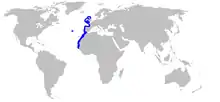 Oxynotus paradoxus lives in two separate places: the Northeast Atlantic and Easter Central Atlantic. In the Northeast Atlantic they are found along the Atlantic slope of Scotland and the Mid-Atlantic ridge. In the Eastern Central Atlantic they are found from Morocco southward to the Gulf of Guinea.[4]
