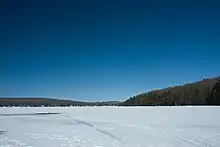 The surface of Lake Saint-Joseph is generally frozen from the beginning of December to the end of March; safe circulation on the ice is generally done from the end of December to the beginning of March.