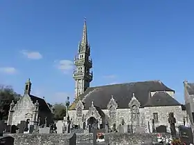 The Saint Servais Parish close (Enclos paroissial) is located at Saint-Servais in the arrondissement of Morlaix in Brittany in north-western France. It comprises the parish church of Saint Servais, with galleried bell tower, an ossuary, and calvary. The church was built in the 17th century on the ruins of an old 13th century chapel founded by the Duschastels, an old Breton family. It has three transepts and a chevet dating to 1688. The clock tower dates to 1610 and rises to 36 metres.[1] It is a listed historical monument since 1914.[2]