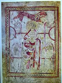 There is an illustration on page 142 of the Lichfield Gospels made about 730 which depicts a prelate whom some scholars identify as Saint Suibne. If correct then it is the earliest contemporary portrait of a bishop of Armagh.