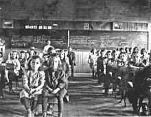 The first school in St. Urban was built on property owned by Frederick Schlittler, approximately one-quarter mile (0.40 km) north of the main intersection of the town. A new school district, 37, was assigned on January 8, 1884. The original school was replaced with a somewhat larger building, c. 1908, and was located diagonally across the St. Urban intersection from the church.[5]