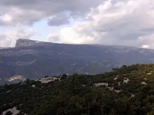 The Sainte-Baume (Provençal: Massís de la Santa Bauma according to classical orthography and La Santo Baumo according to mistralian orthography) is a mountain ridge spreading between the departments of Bouches-du-Rhône and Var in Southern France. Its summit is 1147 metres high.