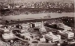 The site that became the Sajmište concentration camp during World War II had originally been an exhibition centre built by the Belgrade municipality in 1937[1] in an attempt to attract international commerce to the city.[2] The centre's modernist pavilions featured elaborate displays of industrial progress and design from European countries, including Germany. Its architectural centerpiece was a large tower which was used by Philips to transmit the earliest television broadcasts in Europe.[3] Much of the centre stood empty and unused until the Axis invasion of Yugoslavia in April 1941.[2] The country was dismembered following the invasion, with Serbia being reduced to Serbia proper, the northern part of Kosovo (around Kosovska Mitrovica), and the Banat, which was occupied by the Germans and placed under the administration of a German military government.[4] Milan Nedić, a pre-war politician who was known to have pro-Axis leanings, was then selected by the Germans to lead the collaborationist Government of National Salvation in the Territory of the Military Commander in Serbia.[5] The civilian administration in the country was headed by SS-Gruppenführer Harald Turner, who commanded the Einsatzgruppen Serbien. Originally led by SS-Standartenführer Wilhelm Fuchs, and later by SS-Gruppenführer August Meyszner with SS-Standartenführer Emanuel Schäfer as his deputy, the group was responsible for ensuring internal security, fighting opponents of the occupation, and dealing with Jews.[6]
