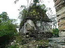 The tallest acropolis was built into a ridge that extends from the southwest, and that is 65 m (213 ft) tall at the site of the ruins.[27] The small spaces here lead archaeologists to believe it was for the use of a select elite, while the nature of the structures indicate religious use.[19]