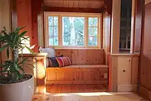 While the overall form of the house was planned in advance, many design decisions were made as building progressed.[4][1] For example, the placement of windows and the height of ceilings was determined on site by first creating mockups in cardboard.[1] Christopher Alexander said the mockups were considered not by a standard of "Do I like it?", but by considering "In all the variations I can think of, which is the one that makes me feel most wholesome, most whole in myself?"[1] The house has been described as a “realisation of a working technique to install those qualities that go beyond stylistic capriciousness to comfort, simplicity and a deep sense of well-being.”[4]