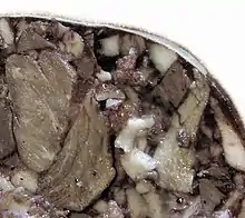 Salceson is a type of meat found in Polish cuisine[2] and other Central and Eastern European cuisines. There are several varieties of salceson which depend on the ingredients.
