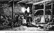 “The October evening wind flows coldly over the moorland. The houses are few and widely scattered. Lights shine here and there but one is more brilliant than the rest. Men and women are excitedly approaching the light. They are just plain folk, the women with shawls on their heads and clogs on their feet. The scene is in an ancient barn. The door opens and two men come through, one is old, the other of middle age. The old man rises and the service begins as he reads Isaiah Chapter 40 … Comfort Ye My People …The sermon has as its text ‘Watchman, what of the night? The Morning cometh’ and the speaker recounts the difficulties under which his followers have laboured. At this point he shows them a piece of paper – their licence – and dwells on what this means. The blessed morning has come. The big barn doors are open for public worship and, please God, the open door shall never be taken away again. Finally, he commends them for keeping alight the flame of the blessed Gospel in that place. The meeting ended with the singing of the 124th Psalm – not very well rendered for this was the first time they had ever dared to sing together aloud.”[3]
