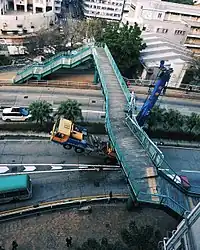 On 20 November 2018, the Hing Yik Footbridge was damaged in a car accident; the overpass was hit by the crane of a truck, causing severe damage its structural integrity[4] and forcing it to be dismantled.