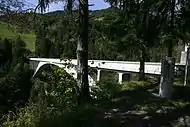 Salginatobel Bridge is a reinforced concrete arch bridge designed by Swiss civil engineer Robert Maillart. It was constructed across an alpine ravine in the grisonian Prättigau, belonging to the municipality of Schiers, in Switzerland between 1929 and 1930. In 1991, it was declared an International Historic Civil Engineering Landmark, the thirteenth such structure and the first concrete bridge so designated.[3]
