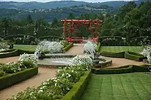 It includes the 17th century Eyrignac Manor (French: Manoir d'Eyrignac), which has a remarkable garden, originally established in the 18th century, surrounding the manor house on a hill, with water coming from seven springs. Only a pavilion, fountains and basins remain from the original garden. In the 1960s, the new owner, Giles Sermadiras de Cuzols de Lile, created a new garden, inspired by gardens from the Renaissance and Italian gardens to the end of the 18th century. The garden features topiary sculptures, vistas, fountains, statues, and an avenue of vases.[3][4]
