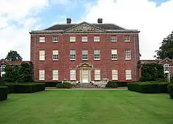 The current house, replacing an earlier house which stood near the northern boundary of the park,[1] was built in 1763[3] for Edward Hase, by an unknown architect. It passed to the Jodrell family when his daughter Vertue married the dramatist Richard Paul Jodrell, her second cousin, in 1772. In 1890 Major Timothy White, ancestor of the present owner, acquired the estate.[2][4][5]
