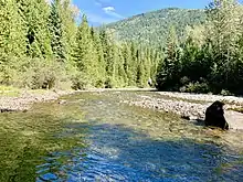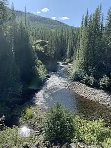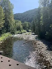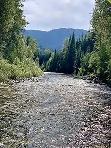 The Salmo River is a tributary of the Pend d'Oreille River in the West Kootenay region of the Regional District of Central Kootenay in the Canadian province of British Columbia. The river is 60 km long and its source is 12 km south of Nelson in the Selkirk Mountains.[4] The Salmo River is part of the Columbia River drainage basin, being a tributary of the Pend d'Oreille River, which flows into the Columbia River.