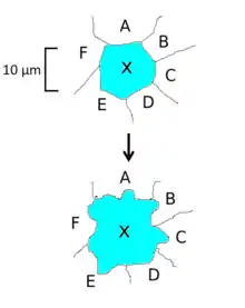 Grain-boundary migration is a dominant deformation mechanism at the top and the middle part of the salt glacier.[13] A subgrain is re-orientated to match the crystal lattice of the adjacent subgrain. Grain boundaries will move as the surrounding crystals are gradually consumed.[12]