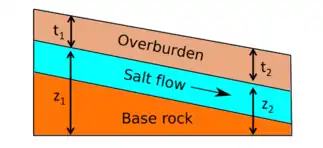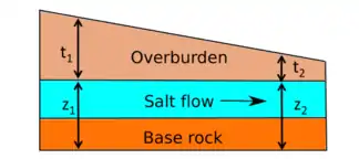 Gravitational differential loading is produced by a combination of gravitational forces acting on the overburden rocks and the underlying salt layer.[1] The effect of gravitational loading on salt flow can simply be expressed by the concept of hydraulic head: